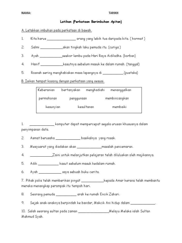 Latihan Imbuhan Apitan Tahun 5 By fu_Dixie1 04 Apr, 2022 Post a Comment 1 1 Latihan Imbuhan Apitan Pdf Imbuhan Apitan Worksheet For 5 Latihan Imbuhan Apitan Pdf Latihan Imbuhan Apitan Tahun 5 Worksheet Share No comments for "Latihan Imbuhan Apitan Tahun 5"